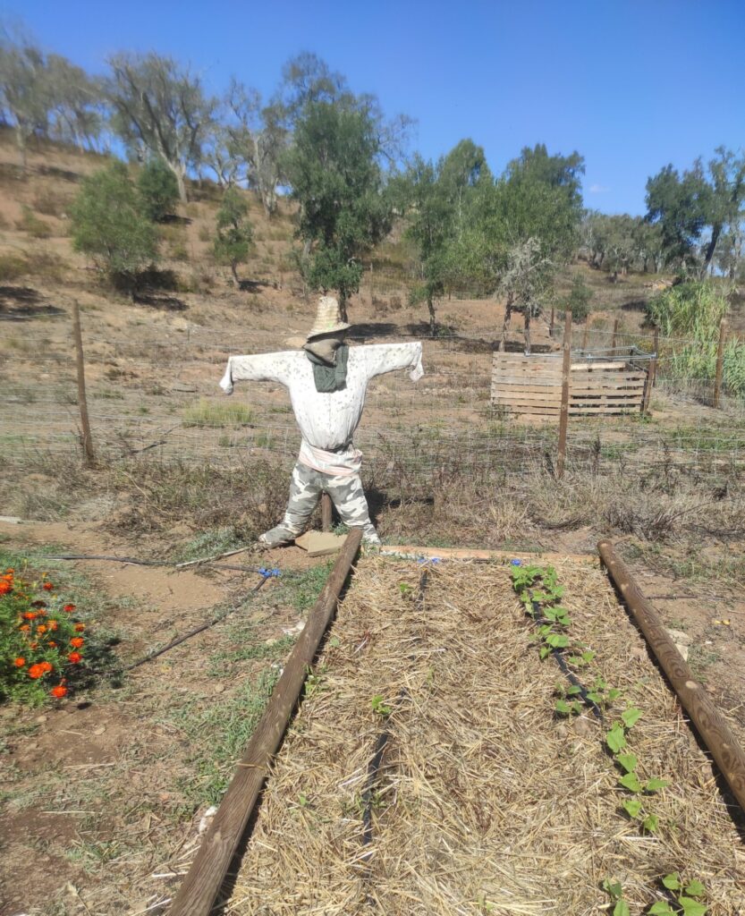Nach der Idee vom Schweizer Ernst Götsch (in Brasilien) haben wir angefangen, einen kleinen Wald zu pflanzen. Die Idee dahinter ist, die Natur möglichst zu imitieren, also verschiedene Bäume und Büsche einzupflanzen und dazwischen Obst und Gemüse abzubauen. Dazu mussten wir zuerst die Erde aufbereitet: