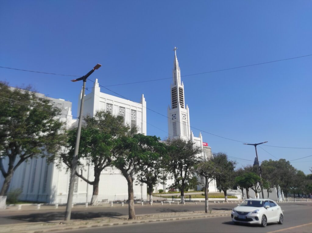 Heute (24.10.2023) bin ich das erste Mal mit einem öffentlichen Bus und dann einem Chapa gefahren. Zum Glück hat mich Irmã Odete begleitet! Um 05:45 ist es losgegangen, weil da der schnelle Bus von Maputo weggefahren ist. Der Bus war schon etwas voll, also sind wir gestanden, bis dann irgendwann doch noch was freigeworden ist. Wegen Taschendieben muss man seine Tasche immer vor dem Bauch tragen und wertvolle Sachen, gut verstauen.