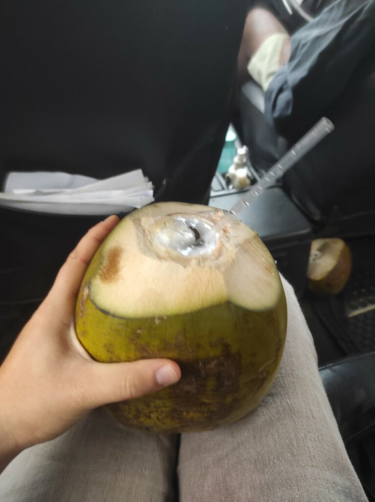 Also haben mich meine Gasteltern im Auto durch Maputo spazieren gefahren, um mir ein bisschen von der Stadt und das Meer zu zeigen. Einmal sind wir auch kurz stehen geblieben, um Kokosnüsse durchs Fenster zu kaufen. Mmmh😊