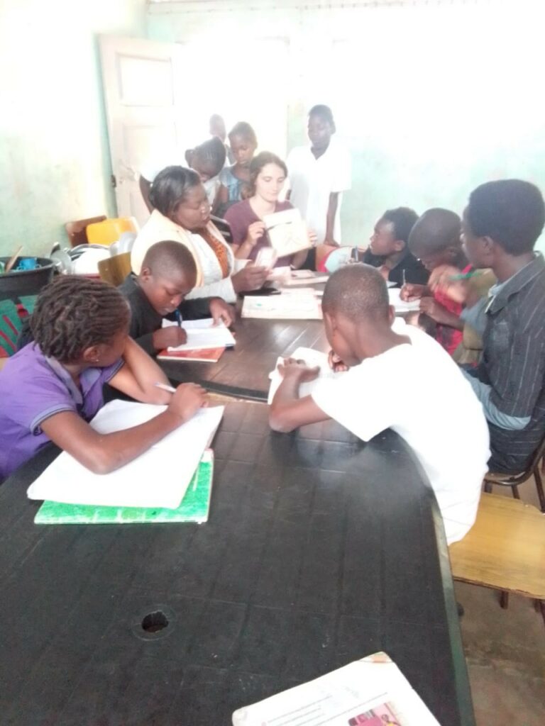 Ich habe in Österreich noch einen Stapel Montessorimaterialien zum Englischlernen ausgedruckt. Da gibt es verschiedene Themen, zum Beispiel der Körper, das Wetter oder Verkehrsmittel. In Maputo habe ich diese dann vorbereitet. Nach einer Weile habe ich die Sachen, die fertig waren, mit nach Massaca genommen, weil viele Kinder und Jugendliche wirklich gerne Englisch lernen wollen. Wir haben zum Beispiel gemeinsam Wörter im Wörterbuch gelesen, um die Aussprache zu üben und mir werden immer wieder Hefte mit Sätzen und Wörtern zum Übersetzen gebracht (teilweise auch auf Deutsch oder Französisch). Im Gegenzug dafür wird mir fleißig Portugiesisch und ein bisschen Changana beigebracht. Wenn ich etwas nicht verstehe, wird es mir so lange erklärt, bis ich herausgefunden habe, was gemeint war oder bis wir gar nicht mehr wissen, was ich am Anfang eigentlich nicht verstanden habe☺️