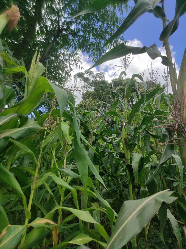 Sie haben dort ein riesiges Areal, wo zurzeit 7 Schwestern und ein paar Auszubildende leben. Es gibt wirklich alles dort! Schweine, Ziegen, Hühner, Gänse, Mangas, Mandioca, Erdäpfel, Guave, Mafura, Papaya,…und unter anderem auch ziemlich viel Mais!