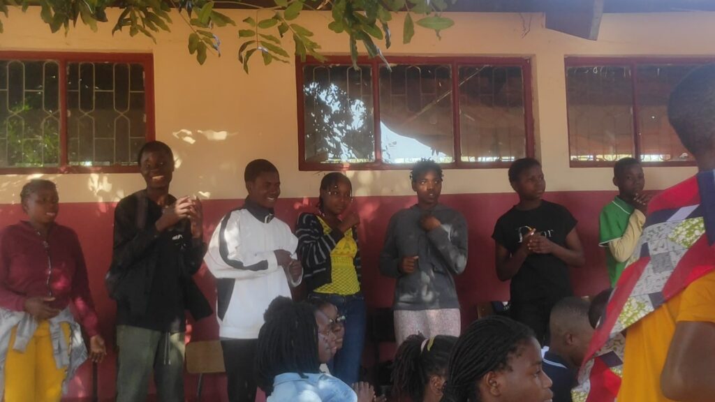 Von Maputo haben die Ir. Odete und ich 4 Mädls von der Kirche mit nach Massaca genommen. Ich habe den Kuchen gehalten und hatte die ganze Zeit Angst, dass ich ihn fallen lasse oder so… Zum Glück ist aber nichts passiert!